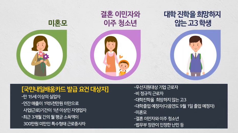 다음은 내일배움카드를 받을 수 있는 대상입니다.