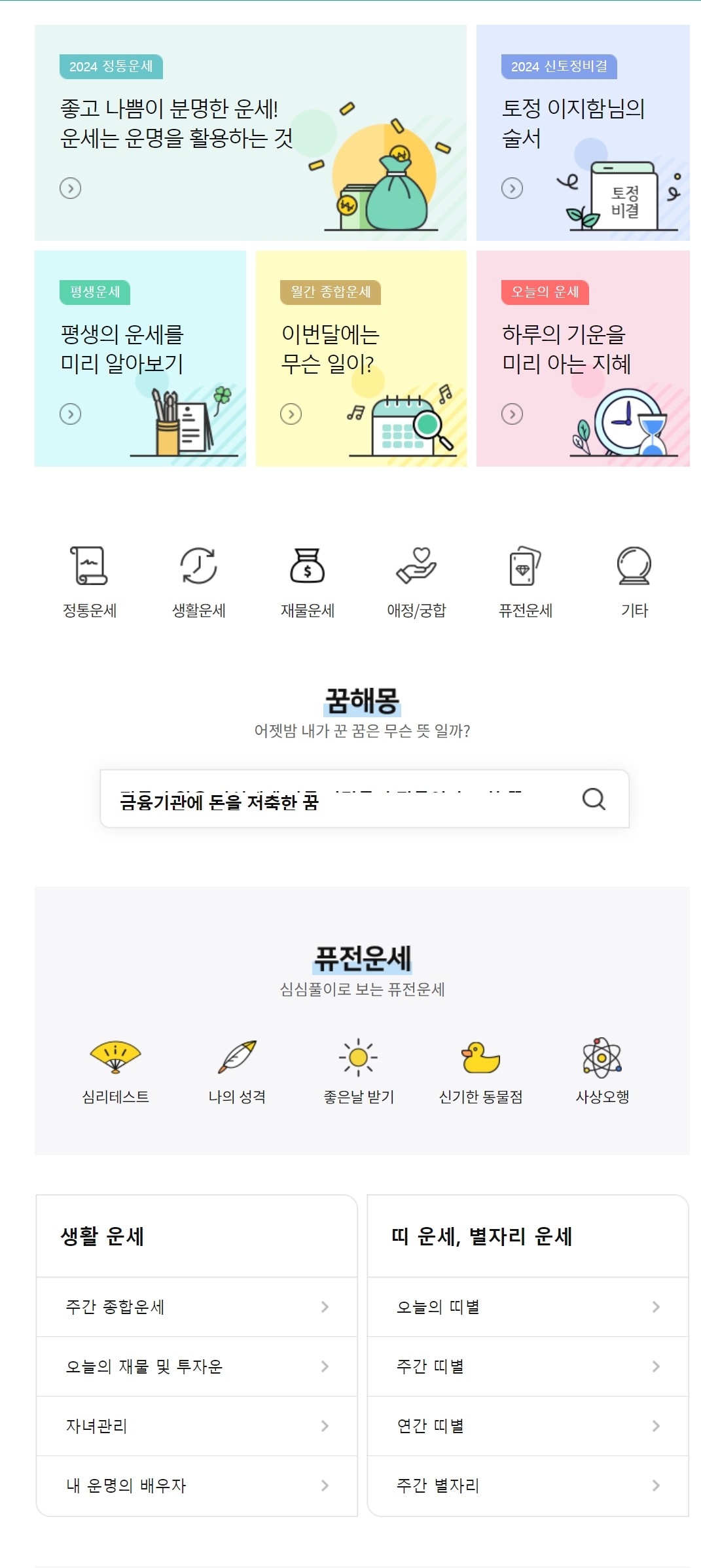 농협 무료운세 사이트는 무료운세 사이트 중 가장 다양한 운세를 볼 수 있는 사이트입니다.